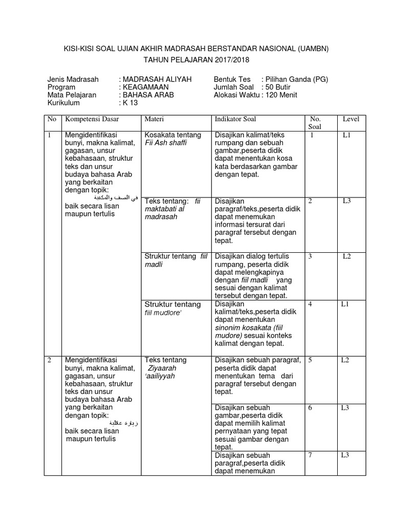 Soal Ujian Madrasah Aliyah Bahasa Arab - Kisi Kisi Ujian Madrasah Pai Bahasa Arab Ma 2021 Sinau Thewe Com : Maybe you would like to learn more about one of these?. We did not find results for: Check spelling or type a new query. Maybe you would like to learn more about one of these? Soal ujian madrasah aliyah bahasa arab.