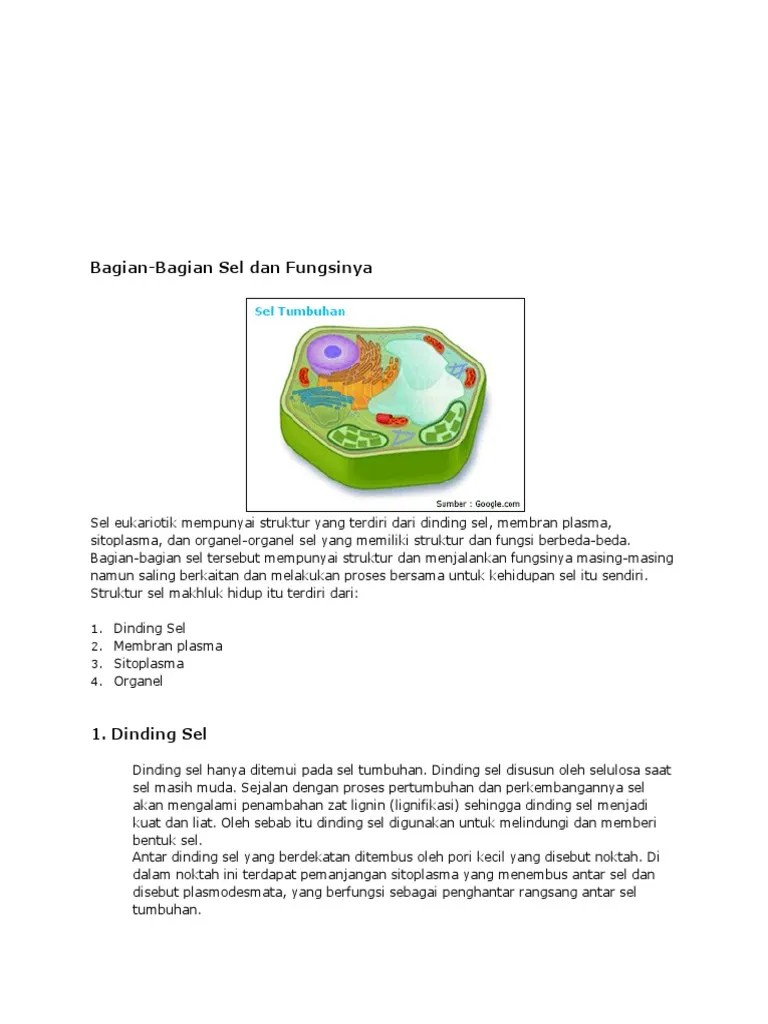 Demikian pembahasan lengkap tentang sel, pengertian sel, serta bagian struktur sel hewan dan sel tumbuhan. Cairan yang ditemukan dalam sel kecuali inti sel nukleus. Gerak matriks sitoplasma berupa arus melingkar. Membran nukleus tersebut dikenal sebagai selaput inti dan memiliki serangkaian pori yang memungkinkan pergerakan dua arah antara nukleus dan sitoplasma. Dinding inti (membran inti) 3. Nukleus ditutupi oleh membran yang mirip dengan membran plasma sel, yang membatasi tubuhnya dan memisahkannya dari luar. Membran sel / membran plasma. sitoplasma dibagi menjadi 2, yaitu bagian dalam (endoplasma) yang lebih keruh dan bagian luar (ektoplasma) yang lebih jernih. Setiap sel memiliki sitoplasma dan berfungsi untuk pelarut untuk semua senyawa dan protein dalam sel. Ribosom yang dibuat dalam nukleolus dikirim ke retikulum endoplasma di sitoplasma. Berasal dari bahasa latin, yaitu "cella" sitoplasma merupakan salah satu bagian dari sel yang memiliki fungsi penting bagi berlangsungnya kehidupan makhluk hidup tertentu. sitoplasma adalah koloid kompleks, artinya, tidak pincang atau padat.